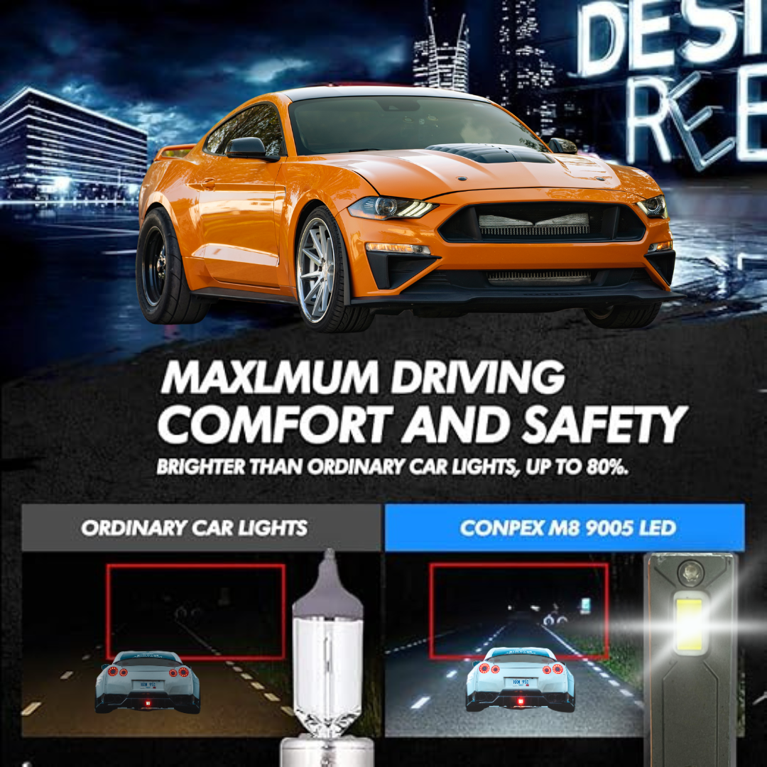 Upgrade your car’s lighting with Conpex LED Headlights, engineered for superior brightness and long-lasting performance. With cutting-edge USA Bridgelux LED chips, these headlights provide an incredible 18,000 lumens, delivering 500% more light than standard models. This improvement guarantees unmatched road visibility and safety, especially in low-light conditions.